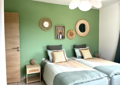 Conçue pour accueillir jusqu’à cinq personnes, la maison dispose de deux chambres raffinées : l’une équipée d’un grand lit en 160 cm, l’autre de deux lits en 90 cm.